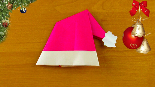 Показываю как сделать ёлочное украшение шапку деда мороза из бумаги