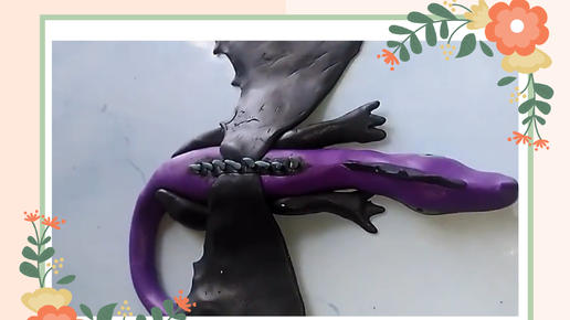 Дракон из полимерной глины фиолетовый