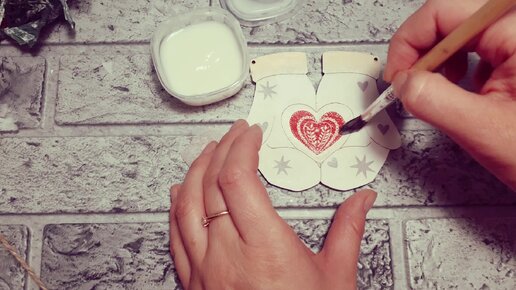 Показываю как сделала новогоднее украшение на елку из деревянной заготовки в форме варежек