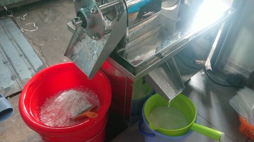 Берем свежую стружку кокоса. Засыпаем ее в этот аппарат и получаем сразу два продукта-молоко и муку какоса .Платим за всё 0.8у.е