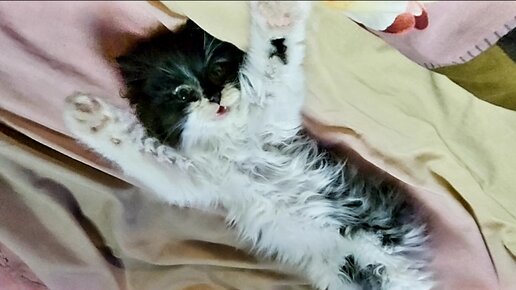 Дикий котёнок приручился. Котёнок пошёл в лоток.