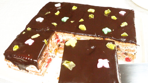 Торт без выпечки с шоколадной глазурью (быстрый рецепт торта)