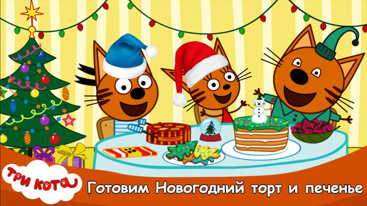 Три кота Новогоднее угощение от Трёх котиков | Печём торт и печенье | Мультики игры для детей | Весёлые КиНдЕрЫ