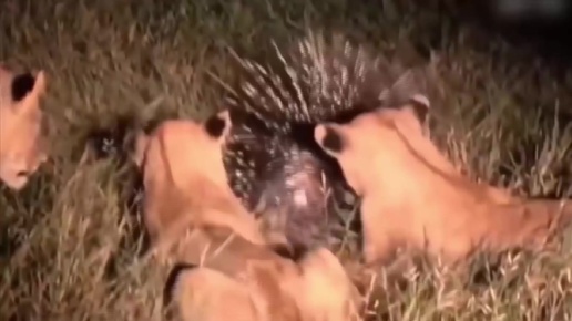 Лев против дикобраза. Львы не могут одолеть одного дикобраза.