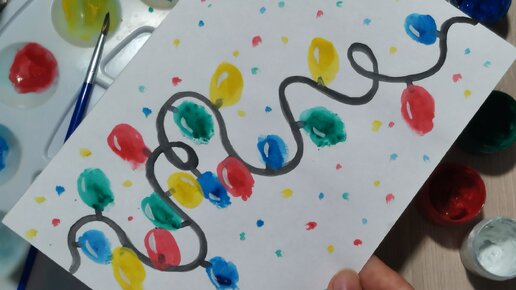Рисуем новогоднюю гирлянду пальчиками. Рисование для детей