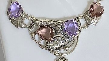 Колье "Вермонт" Камни кварц- Аметист и родолит
