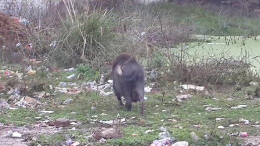 Дикие кабаны в Индии питаются в основном на помойках