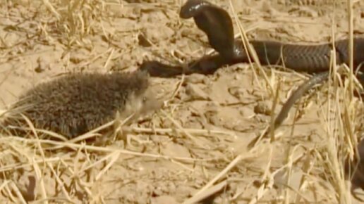 Ёжик спасает ящерицу от королевской кобры. Дикая природа.
