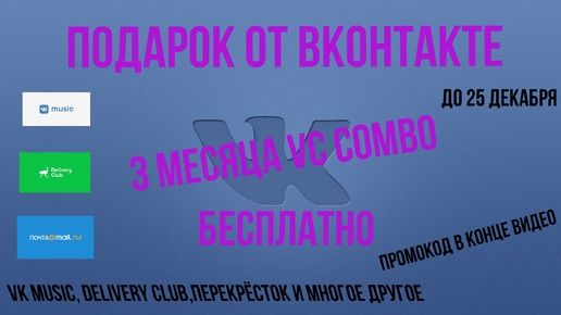 ПОДАРОК ОТ ВКОНТАКТЕ. ПРОМОКОД В ВИДЕО. СКИДКИ НА ЕДУ, ПОЕЗДКИ И МНОГОЕ ДРУГОЕ