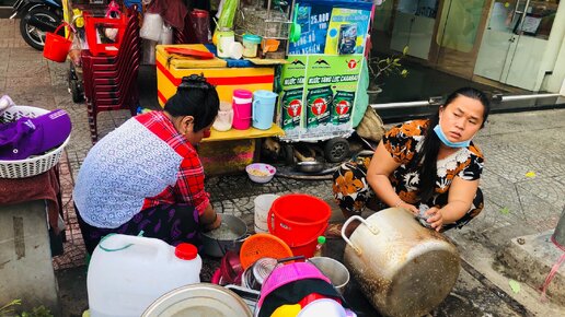 Как моют посуду в уличных кафешках Хошимина. Может быть ее моют так везде но от увиденного есть расхотелось сразу.