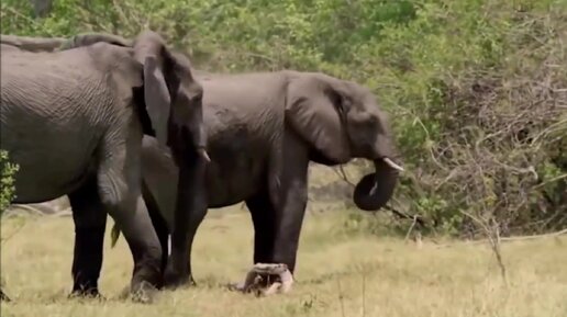 Слон спасает буйвола от нападения львов. Стая львов испугалась одного слона.