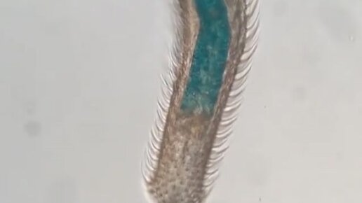 Брюхоресничный червь под микроскопом.