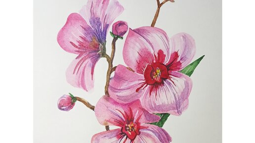 Красивые розовые цветы, как нарисовать акварельными красками.