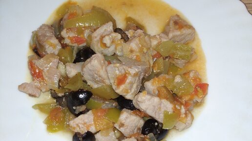 Гуляш из свинины с овощами. Подойдёт к любому гарниру. Можно готовить на сковороде или в мультиварке