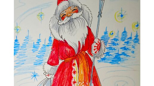Как нарисовать Деда Мороза маркером и карандашами.