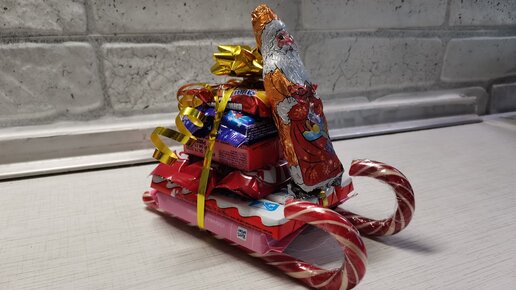 Сани из конфет своими руками. Оригинальный сладкий подарок ребенку или взрослому.