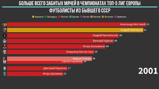 Лучшие футболисты из постсоветских стран по голам в чемпионатах Топ-5 лиг Европы