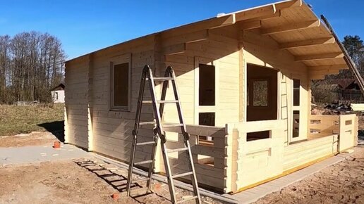 Построили временный летний домик площадью 33м² с небольшой террасой
