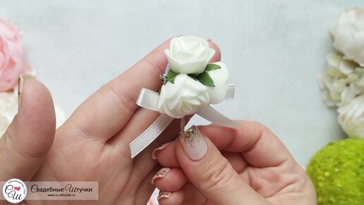 Бутоньерка для жениха "Розанна" (мини) (айвори)