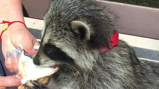 Ручной енот ест мороженое )) Солнечногорск, Калининградская область