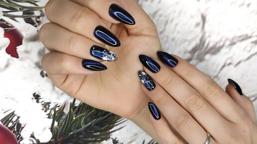 Новогодний маникюр с блестками / Кошачий глаз