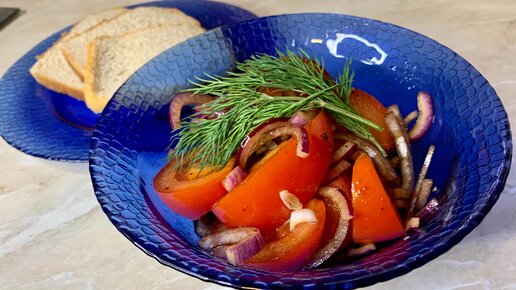 Ну очень вкусный салат из помидор с необычной заправкой! Сохраните рецепт.