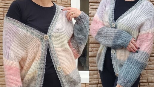 Кардиган спицами из секционной пряжи. Процесс работы. Стирка.
