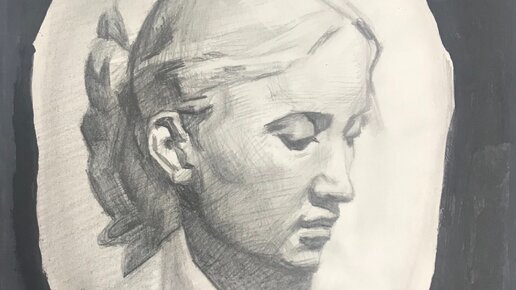 Нарисовал гипсовый медальон, портрет девушки. Показываю как сочетаются разные художественные материалы