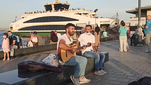Стамбул. Парень душевно поёт на причале Эминеню