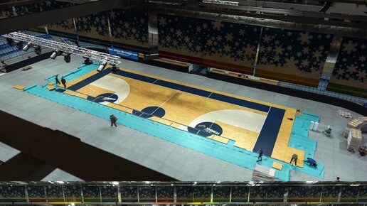 Переоборудование ледовой арены в баскетбольную площадку. Таймлапс