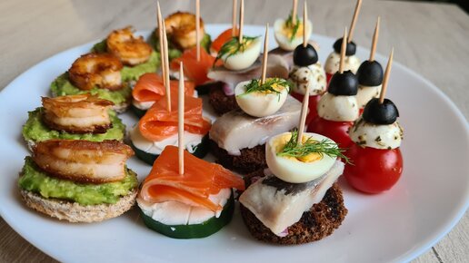 КАНАПЕ на ПРАЗДНИК. 4 ВКУСНЫХ и ПОЛЕЗНЫХ рецепта.
