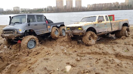Радиоуправляемые внедорожники. Сравнил Унимог 6х6 и Пикап со спаркой колес.