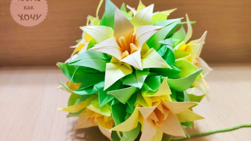 Шар-кусудама для дома. В этот раз сделала из бумажных лилий. Потратила 2 часа и 7 листов бумаги