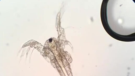 Науплия артемии под микроскопом.