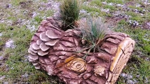 Клумба бревно из Пластикового ящика и цемента