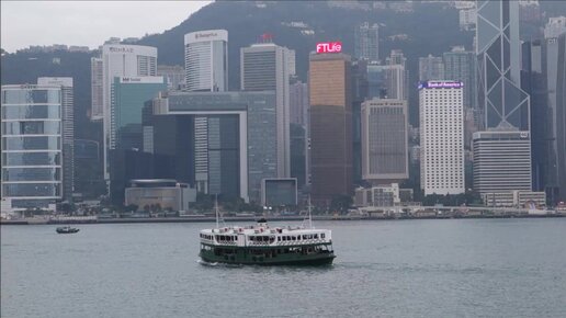 Паромы в Гонконге с видом на небоскребы