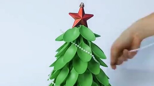 ПРОСТАЯ ЕЛКА ИЗ ПЛАСТИКОВЫХ ЛОЖЕК
