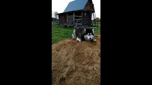 Наша хаски Рута приглашает порезвиться на куче песка.