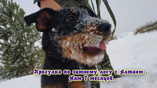 Прогулка по зимнему лесу с Алтаем . Нам 7 месяцев.