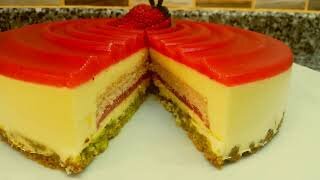 МУССОВЫЙ ТОРТ С ЧИЗКЕЙКОМ ВНУТРИ И С КЛУБНИЧНЫМ ЖЕЛЕ