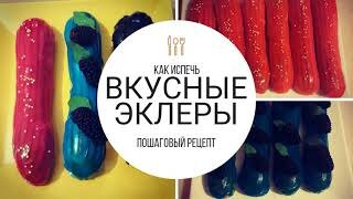 КАК ПРИГОТОВИТЬ ЭКЛЕРЫ С ЗАВАРНЫМ КРЕМОМ И ЦВЕТНОЙ ГЛАЗУРЬЮ
