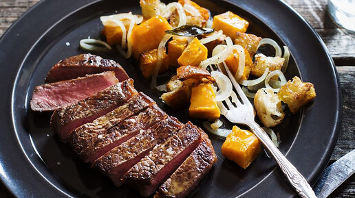 Рецепты к новогоднему столу: мясной стейк с морским гребешком и тыквой