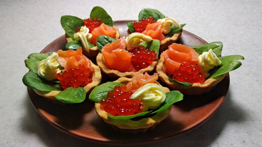Делаем тарталетки с красной рыбой и красной икрой. Быстро и просто