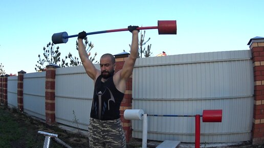 Тренировки в домашних условиях для мужчин . Как накачать плечи с помощью самодельной штанги 30 кг.