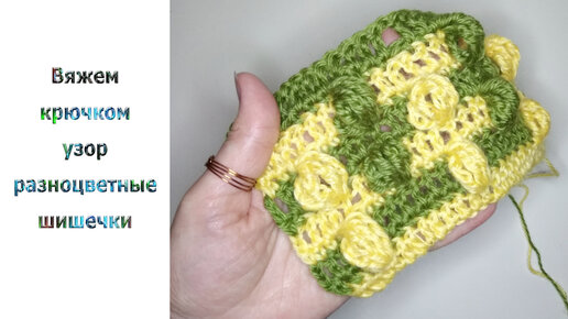Вяжем крючком двухцветный рельефный узор "разноцветные шишечки"