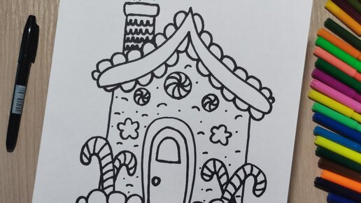 Пряничный домик. Новогодний рисунок. Рисование для детей и для начинающих