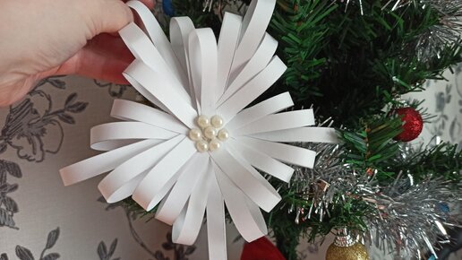 Объемная снежинка 3D из бумажных полосок (украшение за 5 минут)