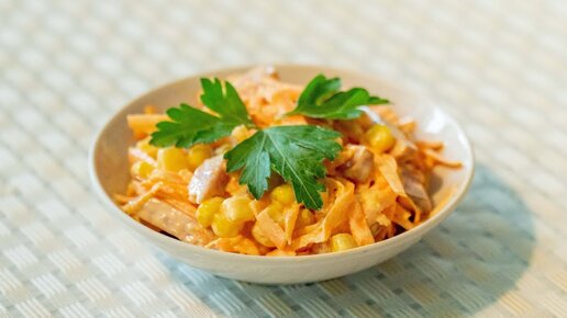 Салат с копченой колбасой и морковью, быстро и просто