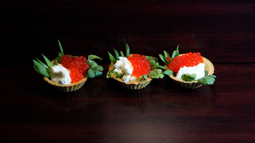 Делаем тарталетки с красной икрой и творожным сыром