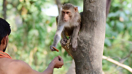 ПРОСЛУШАЙТЕ СТАТЬЮ.Обезьяна отобрала у мужчины сумку с 400 тысячами рублей и разбросала их с дерева